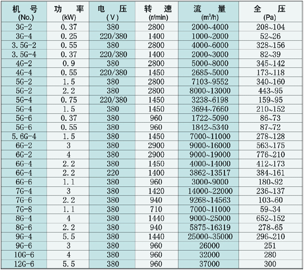 常用離心通風(fēng)機系列